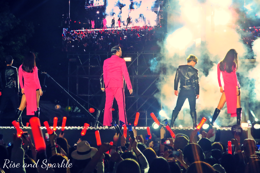 Loppuhuipennuksena oli PSY joka sai yleisön hyppimään ja huutamaan niin, että en olis korealaisista uskonut lähtevän niin paljon ääntä o.O Niin ja nyt voin sanoa kuulleeni Gangnam Stylen Gangnamissa haha...voiko enää sen autenttisemmaksi kokemukseksi enää mennä :P Päätettiin vetäytyä vähän taaemmas, jotta päästäisiin lähtemään helpommin pois mikä oli lopulta ihan fiksu veto. PSY otti yleisön haltuun eikä jäänyt epäselväksi kuka oli konsertin kingi.